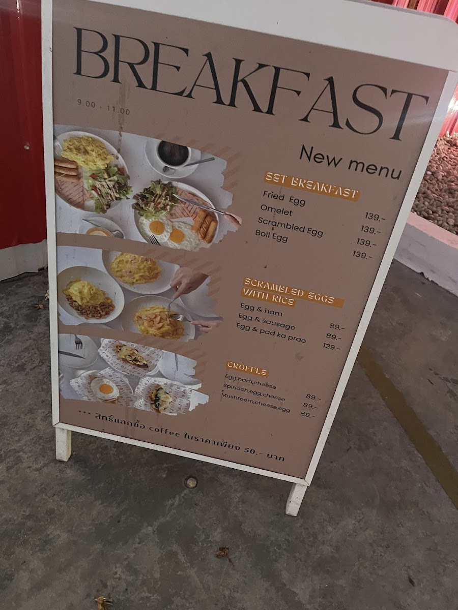 Food options include both Thai and Western-style dishes, with items such as calamari and local specialties like ข้าวผัดลาทู (fried rice). Desserts are also available, featuring items like waffles served with vanilla ice cream. Meals and drinks are generally suited for quick ordering or casual dining.